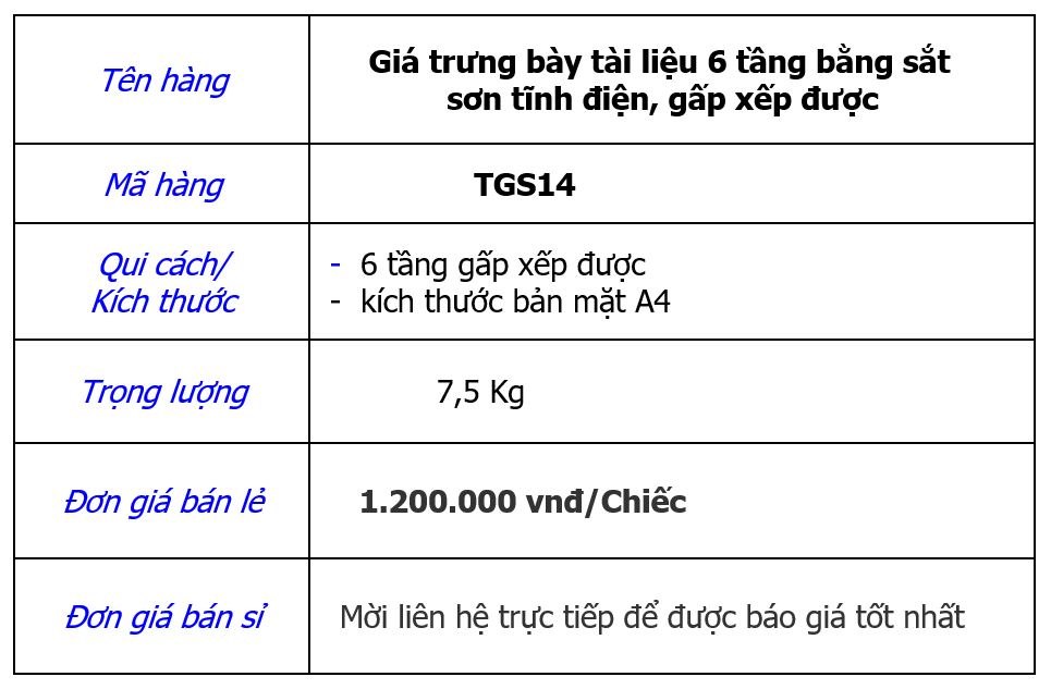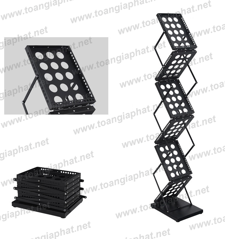 * Giá trưng bày tài liệu 6 tầng, chất liệu bằng sắt sơn tĩnh điện toàn bộ, khung có thể gấp xếp được