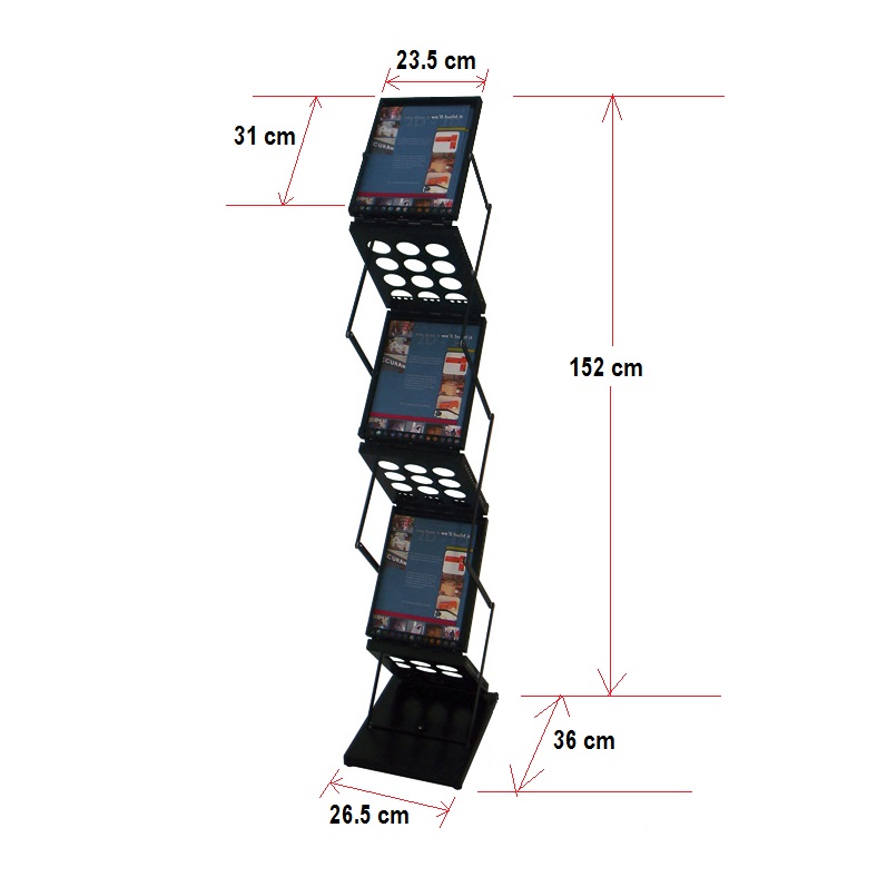 Sản phẩm dùng để trưng bày các loại tài liệu quảng cáo như tờ rơi, broucher, catalogue,… để trong văn phòng, cửa hàng, sảnh chờ khách sạn, trung tâm thương mại, các sự kiện, triển lãm, hội chợ,…vv. Ngoài ra sản phẩm này cũng có thể để sách, báo, tạp chí, … trong phòng làm việc, phòng khách, phòng đọc sách,… làm cho ngôi nhà của bạn thêm phần tiện nghi.