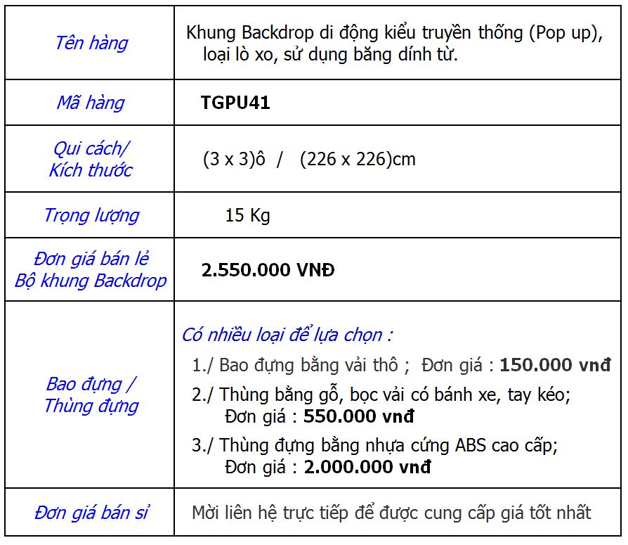Khung Backdrop di động ( hay còn gọi là Pop up) loại nam châm hoặc khớp nối, dùng băng dính móc.